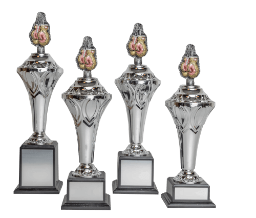 Prisvenlig trofæ/statue monteret på flot sokkel.