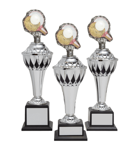 Prisvenlig trofæ/statue monteret på flot sokkel.