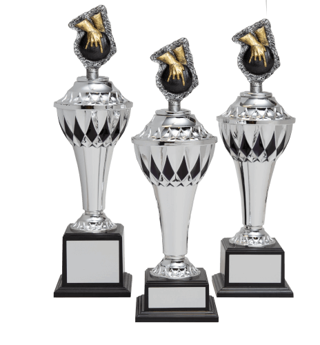 Prisvenlig trofæ/statue monteret på flot sokkel.
