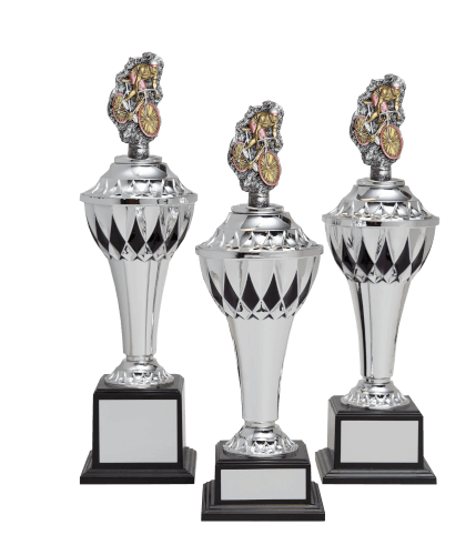 Prisvenlig trofæ/statue monteret på flot sokkel.
