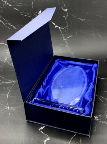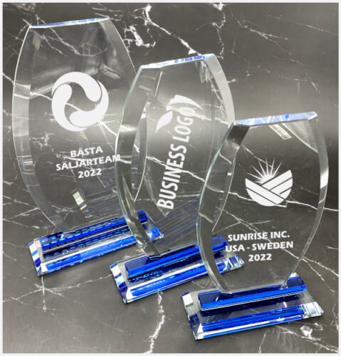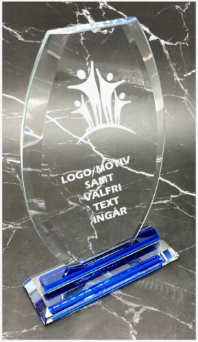 Glasfigur på dobbelt sokkel, hvoraf den ene er i en eksklusiv koboltblå farve.