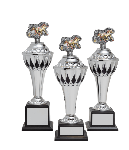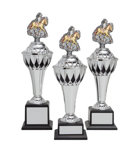 Prisvenlig trofæ/statue monteret på flot sokkel.