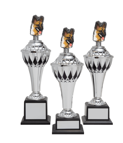 Prisvenlig trofæ/statue monteret på flot sokkel.