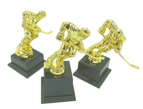 Actionfyldt hockeyspiller på en stilfuld sokkel i tre forskellige højder.