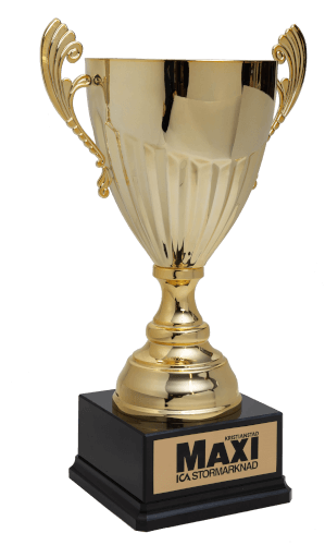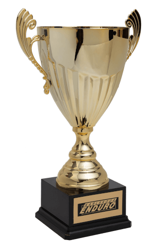 Virkelig mastodont trofæ helt i metal, med en generøs graveringsoverflade på bunden.