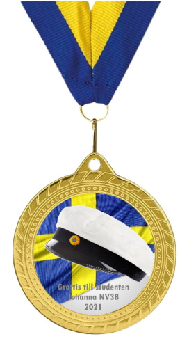 Medaljebånd og valgfri tekst er inkluderet i prisen.