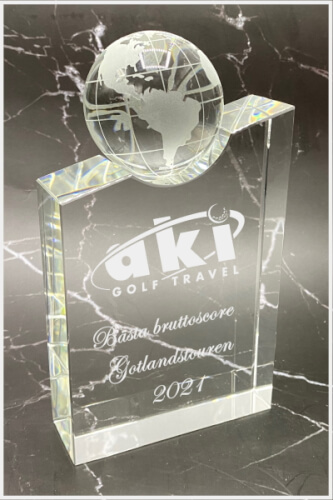 Dette trofæ er sandblæst, hvilket resulterer i et unikt håndværk.